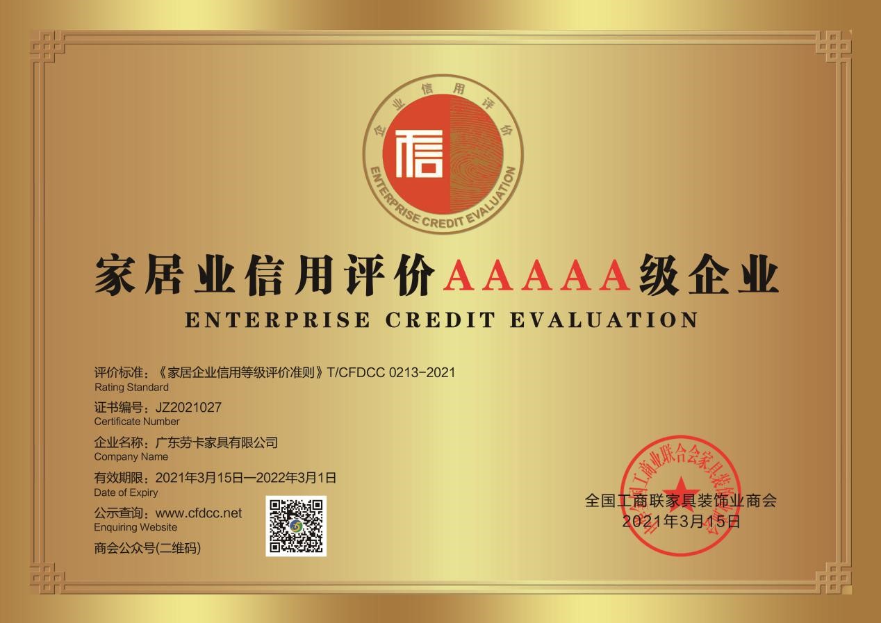 同时全国工商联装饰业商会按照“自愿、诚信、公正、科学、严格”的原则评选出首批家居信用评价5A企业。经过严格的审核,AG尊时凯龙人生就博全屋定制凭借坚守诚信经营,踏踏实实为广大消费者提供好产品好服务,而获得5A企业的荣誉,并于“315”进行线上颁发授牌。