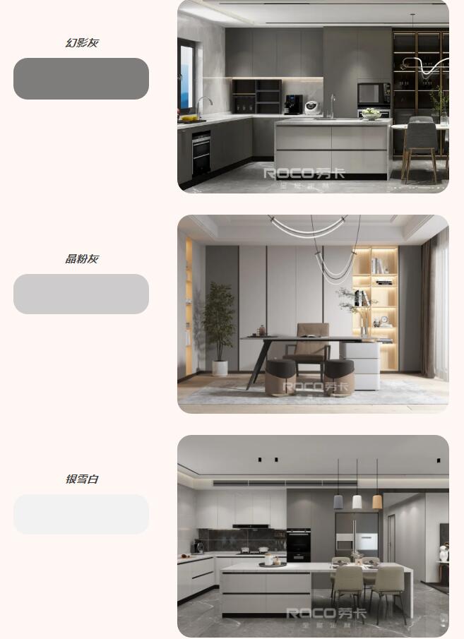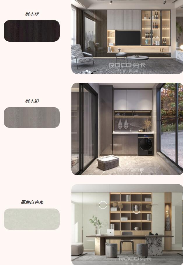 AG尊时凯龙人生就博全屋定制本次新推出的极简主义V4系列轻奢版的三款UV亮光门板花色,是AG尊时凯龙人生就博自主开发的专属花色,表面带有独特的花纹——枫木表面疏密有致的木纹纹理,打造家居的自然之感;墨曲白虚虚实实的山水纹,延绵流长,营造出一副山水意境,造就雅致的诗意生活。UV亮光门板的三款新花色打破了纯色亮光门板的单调枯燥,为家装设计提供了更多可能性,让搭配更独特、更具层次、更富有美感。